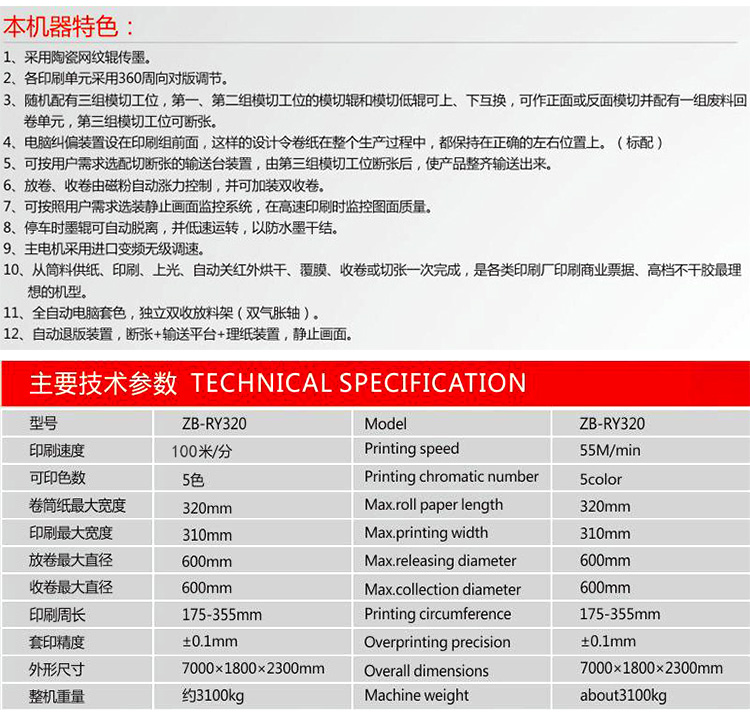 本公司擁有經驗豐富及強大的技術力量,自行研制開發的柔性版印刷機、模切機、檢標機、紙吸管機、分切機等產品暢銷**,出口日本、印度、巴基斯坦等多個國家和地區。多年來,產品的上乘品質和良好的信譽,贏得了廣大客戶的青睞和好評,為社會創造了效益。